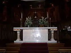 St. James' Episcopal Church is a "broad church" parish, offering a balance between the high church and low church styles of churchmanship. In worship and theology, this stresses and embraces the breadth of Episcopal doctrine and practice. The original marble altar, raised up several tiers, is used to celebrate some Eucharists, while a simpler wooden altar placed at floor level near the congregation is used for others. Worship is from the 1979 Book of Common Prayer, primarily using Rite II, written in modern language. All four Eucharistic Prayers are used throughout the year. Rite I, written in very traditional language, is used on occasion.