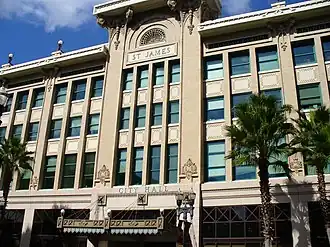 The St. James Building is a historic building in Downtown Jacksonville, Florida, currently housing Jacksonville City Hall. It was designed by architect Henry John Klutho and opened in 1912. One of many structures in downtown Jacksonville designed by Klutho after the Great Fire of 1901, it is considered his Prairie School masterpiece.[2]