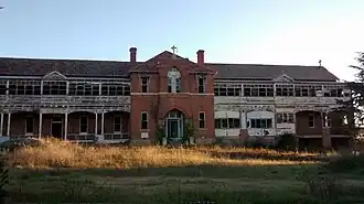 The orphanage was run by the Sisters of Mercy and the Catholic Church until its closure in 1978.[14][15] Shortly after opening, the orphanage experienced an increased demand for admission leading to the construction of a west wing and chapel in 1919. However, it remained unfurnished for some time due to lack of funding, and the Sisters of Mercy subsequently refused admission.[16][17][18] A new wing for the building was constructed in 1924 dedicated to the memory of Bishop Gallagher. The new wing was opened and blessed by Reverend J. Barry; additional classrooms and dormitories were built, being 18.2 m (60 ft) by 7.6 m (25 ft) in size, followed by furnishing, painting and connection of sewer lines. The total cost was approximately £2,676.[19] In 1932, a milking shed and hall were built, and in 1938 new additions to the orphanage were added, costing £2,575. This included a modification and extension to the south wing.[6][18][20] The orphanage endured minor damage in 1943 when a fire broke out just after midnight and destroyed quantities of firewood and two panels of fencing.[21]
