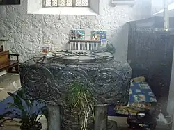 The font was made in about 1170 from a single block of black Tournai marble and is one of four such fonts in Hampshire with a further 3 in the rest of England.[1][10] The pillars of the font are made from Purbeck Marble.[10]