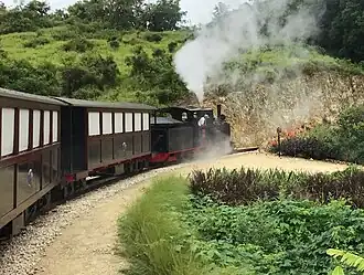 The heritage railway runs on a balloon-shaped track from St Nicholas Abbey to the panoramic view point Cherry Tree Hill. It offers locals and tourists a 45 minute long train ride, including a stop to enjoy the panorama overlooking the sea. The railway is designed to provide a family day-out for general tourists, but also a specialist experience for railway enthusiasts, with short lectures on Barbadian railway history offered (as an optional attraction) during the stop at Cherry Tree Hill, where volunteers are also recruited to assist in turning the locomotive on the manually operated turntable.[3][4]