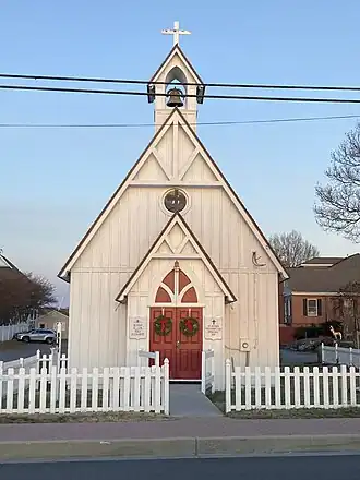 St. Peter's Chapel is an historic Carpenter Gothic-style Episcopal church building located at 14590 Solomon's Island Road, South, in Solomons, Calvert County, Maryland. Built in 1889, it features the steep roof, lancet windows and board and batten siding typical of Carpenter Gothic churches. In 1900 it joined with Middleham Chapel to form Middleham and St. Peter's Episcopal Parish in the Episcopal Diocese of Maryland.[1] St. Peter's Chapel is still in use today. The parish's current rector is the Rev. David Showers.[2][3]