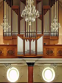 The pipe organ was installed in 1974 by Mühleisen Manufacture d’orgues from Strasbourg. It was revised in 1992, 1994 and 1997.[3]