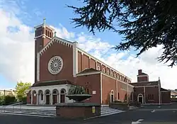 The Roman Catholic parish church is St. Pius X which opened on 27 November 1960 on College Drive.[16] A historical chapel was built in the 13th century beside the graveyard which survives at Wellington Lane,[2] where the original village of Templeogue was located.