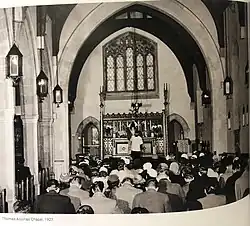 Because of its connection to the Newman Centre, it was known by students on campus as the Newman Chapel.[1] From 1913 to 1936, the Newman Centre and chapel were served by the Paulist Fathers at St. Peter's Church, Toronto.[5]
