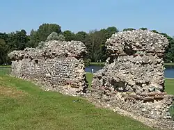 St Albans Abbey and the associated Anglo-Saxon settlement were founded on the hill outside the Roman city where it was believed St Alban was buried. An archaeological excavation in 1978, directed by Martin Biddle, failed to find Roman remains on the site of the medieval chapter house.[12] As late as the eighth century the Saxon inhabitants of St Albans nearby were aware of their ancient neighbour, which they knew alternatively as Verulamacæstir or, under what H. R. Loyn terms "their own hybrid", Vaeclingscæstir, "the fortress of the followers of Wæcla", possibly a pocket of British-speakers remaining separate in an increasingly Saxonised area.[13]