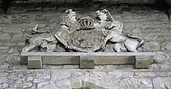 Above the chancel arch, in the nave, are the royal coat-of-arms of Charles II, dated 1683,[8] which were erected by the lord of the manor, Samuel Sanders in 1683.[6] The coat-of-arms is constructed of plaster[11] and is unpainted.[6] The royal coat-of-arms are flanked on the right by the coat-of-arms of Samuel Sanders, and on the left with the coat-of-arms of his wife, Margaret.[6] When permission was granted to restore and repair the church in 1889 the all three coat-of-arms were taken down, they were not re-installed until 1913 during which time some of the plaster was damaged.[6]
