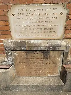 As well as size restrictions, St James was faced with major structural problems and in 1904, the eastern wing of the building, facing Mort Street, was demolished. The chancel was rebuilt along with the northern transept and adjoining vestry. This work was supervised by Brisbane architect John Smith Murdoch and finished at a cost of £1000.[1]