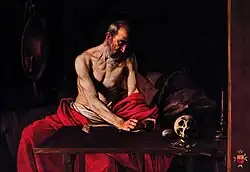 Saint Jerome Writing, by Caravaggio, 1607, at St John's Co-Cathedral, Valletta, Malta