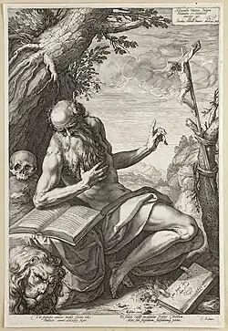 A copy of a lost St Jerome, in oils on copper, is attributed to the circle of the Italian Renaissance artist Palma the Younger, dated to the early 17th century.[1] It is in a private collection. It measures 26.3 x 22.2 cm.[2]
