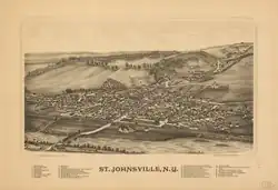 Accounts vary as to the source of the name "St. Johnsville", but most of them state that the town and its village are named after an early surveyor and commissioner, Alexander St. John.[3] Still others credit the naming of St. Johnsville to a former name for the area, St. John's Church.[4]