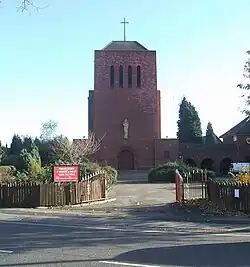 The church was built in 1939 by the architect Richard Twentyman.[2] Pevsner describes it as impressively blocky. It was built on the site of an old mine. The foundations of the church were made of reinforced concrete to a depth of 12 ft.[3] It comprises a 2 bay chancel, and 6 bay nave with low aisles.