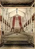 In fact for the next eight years there were various schemes and competitions to design a new building. Eventually the old building closed on 27 December 1829, and the congregation moved to the Great Hall of Hampton Court Palace as the church was demolished.