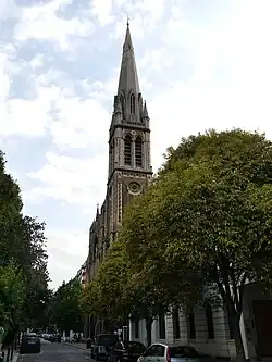 St Petersburgh Place is a street in the Bayswater area of London, located in the City of Westminster. It runs north to south from Moscow Road to Bayswater Road, close to the northwestern entrance to Kensington Gardens. It was constructed by the property developer and painter Edward Orme during the Regency. As with Moscow Road its name commemorates the visit of Alexander I of Russia to London in 1814 as part of the Allied celebrations following the victory in the Napoleonic Wars.[1] It was originally known simply as Petersburgh Place, but this was later changed to St Petersburgh Place, an alternative spelling of Saint Petersburg, the then-capital of the Russian Empire. In 1818 Orme constructed a Bayswater Chapel for the growing number of inhabitants.[2] From 1823 to 1826 Orme also developed the nearby Orme Square. Adjacent to the street is the smaller St Petersburgh Mews, which runs parallel northwards to Moscow Road.