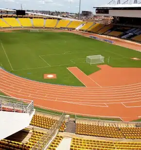 Ahmadou Ahidjo Stadium is a multi-purpose stadium in Yaoundé, Cameroon. It is used mostly for football matches and it also has athletics facilities. It was built in 1972. The stadium has been renovated in 2016 ahead of the African Women Cup of Nations tournament. It has a capacity of 42,500 seats. It is the home stadium of Canon Yaoundé, Tonnerre Yaoundé and the women's club Louves Minproff. The stadium is also known as the home venue of the Cameroonian national football team, who drew the stadium's record attendance of 120,000 in a football match in the 1980s. [2] It was one of the venues used in the 2021 Africa Cup of Nations.