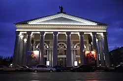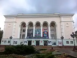 ![]() ![]() ![]() ![]() ![]() ![]() Left to right from top: Transfiguration Cathedral (big image); Donbass Palace; Drama Theatre; Lenin Square; Opera Theatre; and bridge on Ilicha Prospect | |