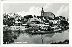During World War II, the Germans operated the Stalag III-B prisoner-of-war camp for Polish, French, Belgian, Serbian, Soviet, American, Dutch, Italian and British POWs in Fürstenberg with several forced labour subcamps in the town and region, a forced labour camp for Jewish men, and a subcamp of the Sachsenhausen concentration camp.[7][8][9]