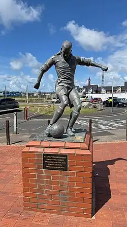 On 23 August 2005, a statue of Mortensen was unveiled by his widow, Jean, and former Blackpool teammate Jimmy Armfield in front of Bloomfield Road's new North Stand, which now bears his name.[23] "Of all the honours that Stan won in football, he would think this was top of the league. He was so very proud of playing for Blackpool and loved everything about the town. Nothing was ever too much trouble for him when the club or town came knocking. For him to be remembered in a statue, he would think it was the creme de la creme. A massive thank-you has to go to the generous people of Blackpool, who have dug deep to raise money for this. Stan would have been really proud."[6] Jean Mortensen died in July 2009 at the age of 88.[24]