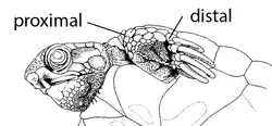 | L. Limbs (V12). | L11. Forelimb paddle (V12g). | The forelimb is thicker distally than proximally. Paddle shaped. | [1] | ![]()  |