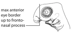 | O. Maxillary process of the mandibular arch (G01). | O5. Maxillary process anterior to eye (G01e). | The tip of the maxillary process is located beyond the level of the anterior border of the eye up to the posterior margin of frontonasal process. | [1] | ![]()  |