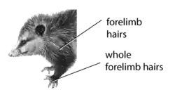 | Z. Hairs (M01). | Z4. Forelimb hairs proximal (M01d). | The proximal part of the forelimb is covered by hairs. | [10] | ![]()  |