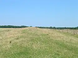 The section from Thirty Acres Barn, Ashtead to Mickleham Downs is well preserved and is listed as a scheduled monument.[17] A 2020 Lidar survey revealed that Stane Street was built across an earlier field system, although it is unclear whether the area was under active cultivation at the time of construction.[42] The considerable evidence of both Bronze Age and Iron Age activity on Mickleham Downs suggests that a pre-existing early trackway was adapted and straightened by the Romans, to create this part of Stane Street.[43]