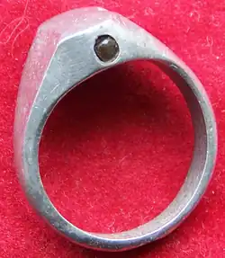 A stanhope or stanho-scope is an optical device that enables the viewing of microphotographs without using a microscope.[1][2] They were invented by René Dagron in 1857.[1] Dagron bypassed the need for an expensive microscope to view the microscopic photographs by attaching the microphotograph at the end of a modified Stanhope lens.[1] He called the devices bijoux photo-microscopiques or microscopic photo-jewelry.[3]