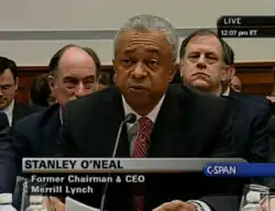 Earnest Stanley O'Neal (born October 7, 1951)[2] is a retired American business executive. He was CEO of Merrill Lynch from 2002 to 2007, and chairman and CEO from 2003 to 2007, having worked at the firm since 1986. He was the first African-American CEO of a Wall Street firm.[3]