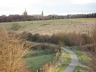 South Moor Golf Course, lying south of the town and to the west of The Middles,[58] was founded in 1923 and first operated by the National Coal Board. Redesigned in 1925 by Alister MacKenzie, a famous golf course architect, the course has 18 holes. It has a practice area, a short-game area, a pro shop, and a clubhouse that can host functions.[59]