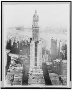 The company was seated at 37 Park Row, and later at 261 Broadway, and finally at 361 Broadway.[17] A few years before his father's death, in 1915, they moved the headquarters to the famous Woolworth Building in Manhattan at 233 Broadway, one of the first skyscrapers, and the tallest building in the world at the time. The building had been finished in 1913, two years earlier, and Nikola Tesla had moved in by 1914.[17][18]