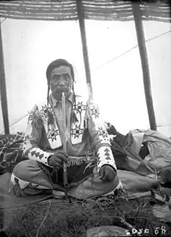 Chief Ahchacoosacootacoopetis (acâhkosa kâ-otakohpit, "one who has stars for a blanket"), who assumed the position in 1875.[3]