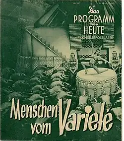 Stars of Variety (German: Menschen vom Varieté, Hungarian: A varieté csillagai) is a 1939 German-Hungarian drama film directed by Josef von Báky and starring La Jana, Christl Mardayn and Karin Hardt.[1] It was shot at the Hunnia Studios in Budapest.[2] The film's sets were designed by the art directors Robert A. Dietrich and Artur Günther. Separate German and Hungarian-language versions were produced.[3]