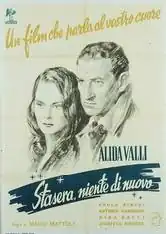 Nothing New Tonight (Italian: Stasera niente di nuovo) is a 1942 Italian drama film directed by Mario Mattoli and starring Alida Valli, Carlo Ninchi and Antonio Gandusio.[1][2] It was shot at the Safa Palatino Studios in Rome. The film's sets were designed by the art directors Piero Filippone and Mario Rappini.