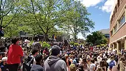 The Downtown area has seen large protests over past the couple of decades,[68] particularly at the Allen Street Gates and the Martin Luther King Jr. Plaza. In recent years, marches for May Day,[69] Black Lives Matter,[70] trans rights,[71] and against Israeli war crimes have taken place in the Downtown streets.[72]