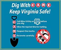 5. ^ "Chapter 10.3 - Underground Utility Damage Prevention Act". leg1.state.va.us. Archived from the original on November 12, 2013.
