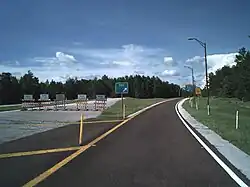 The Suncoast Parkway was the first Florida's Turnpike Enterprise toll road to feature open road tolling.[11] The three mainline toll plazas on the Suncoast Parkway originally featured bypasses where those paying cash remained on the mainline and stopped at the toll plaza while those with a SunPass or related transponder exited the mainline roadway, bypassed the toll plaza and then re-entered the mainline. This differed from later open road tolling locations in Florida where transponder users remained on the mainline to bypass toll booths built or moved to the side of mainline traffic.[11][12]