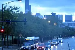 State Street is primarily served by 29 State, a CTA bus route that runs from Navy Pier to 95th/Dan Ryan station via State Street. At 69th Street, bus route 29 splits so that southbound buses travel along Lafayette Avenue and northbound buses travel along State Street; starting at the split, both of the streets become one-way frontage roads for the Dan Ryan Expressway. Multiple other bus routes, such as bus route 36 in downtown, run along State Street in segments to serve a train station or downtown.[20]
