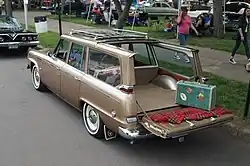 The first two-door station wagon was the 1946 Willys Jeep Station Wagon.[79] Other early two-door station wagons were the 1951 Nash Rambler[80] and the 1954 Studebaker Conestoga.[81] In 1956, Studebaker introduced three new two-door wagons in Pelham, Parkview, and Pinehurst trims.[82]