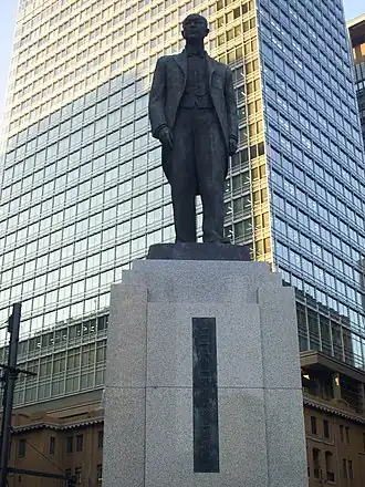 A statue of Inoue Masaru is installed in Marunouchi Central Plaza, outside Tokyo Station, in Tokyo, Japan.