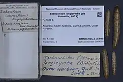 - ^ Vinarski, Maxim (2023). Bieler R, Bouchet P, Gofas S, Marshall B, Rosenberg G, La Perna R, Neubauer TA, Sartori AF, Schneider S, Vos C, ter Poorten JJ, Taylor J, Dijkstra H, Finn J, Bank R, Neubert E, Moretzsohn F, Faber M, Houart R, Picton B, Garcia-Alvarez O (eds.). "Stenochiton H. Adams & Angas, 1864". MolluscaBase. World Register of Marine Species. Retrieved 2024-11-03.