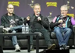 The Chiodo Brothers (Stephen, Charles & Edward Chiodo; /kiˈoʊdoʊ/; born in Bronx (raised in Deer Park[1]) New York, are an American trio of sibling special effects artists, specializing in clay modeling, creature creation, stop motion and animatronics. Known for their film Killer Klowns from Outer Space and creating puppets and effects for films such as Critters, Ernest Scared Stupid, and Team America: World Police, the Chiodo brothers created the claymation sequence for the Large Marge scene from Pee-wee's Big Adventure, and the stop-motion elements in the North Pole scenes from Elf.[2] They also created the mouse dioramas featured in the 2010 film Dinner for Schmucks,[3] as well as the stop-motion Stone Age creatures in the Cup Noodles ads from the mid-90s and were puppeteers on The Thundermans. In addition, they produced a puppet segment for the episode of The Simpsons, "The Fight Before Christmas" (2010). The band Chiodos was originally named "The Chiodos Bros." after them, before modifying their title slightly.