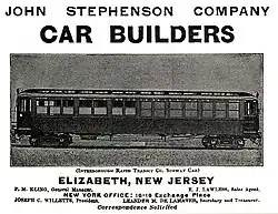 - ^ "Car Builders in Trouble; Receivers Appointed for the John Stephenson Company". The New York Times. October 26, 1898. p. 12.