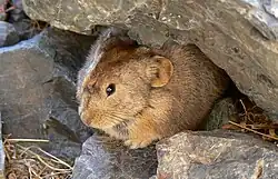 Around Lake Balkhash in Kazakhstan, the main prey was reportedly the red-cheeked ground squirrel (Spermophilus erythrogenys), a slightly larger ground squirrel than the little species at a mean adult weight of 355 g (12.5 oz). Other prey noted here included Pallas's pika (Ochotona pallasi), Libyan jird (Meriones libycus) and tolai hare (Lepus tolai).[145][152] In Xinjiang, reportedly the main prey species is the 415 g (14.6 oz) long-tailed ground squirrel (Urocitellus undulatus).[141][145] In the Altai region, the leading prey may be the Siberian zokor (Myospalax myospalax), which is the size of a large ground squirrel at an adult weight of about 453 g (0.999 lb).[10][153][154] However, some report in the Altai region that the main prey is the long-tailed ground squirrel and the migration arrival times do seem to correspond closely with this species hibernation emergence period.[155] Yet another primary prey resource reported for steppe eagles in the Altai is the much larger gray marmot (Marmota baibacina). All the primary prey in the previously little reported Altai population are as adults well over what is considered the typical prey size range for this eagle, such as long-tailed ground squirrels, zokors and marmots as well as ptarmigan, and in turn, this may favor the large size of the steppe eagles from this region.[10][155][156] On the contrary, other predominant prey in steppe eagle nests can be even smaller than ground squirrels. In Mongolia, the main prey by a large margin was reportedly the Brandt's vole (Lasiopodomys brandtii), which weigh about 40 g (1.4 oz).[157][158] In the Transbaikal region, the main prey may be the Daurian pika (Ochotona dauurica), which weighs about 155 g (5.5 oz). This pika can account for around 39%, as was the case in 62 prey items, (and perhaps up to 62% locally) of the diet in the region.[159][160][161] Another study reported a very different primary food source for the Transbaikal, which was the young of the much larger Tarbagan marmot (Marmota sibirica), which were estimated in the study to be from 55 to 77% of the annual diet.[162] Even more conflicting data found that some Transbaikal steppe eagles derived as much as 70% of their foods from long-tailed and Daurian ground squirrels (Spermophilus dauricus).[159] It is possible that in both Altai and Transbaikal that the shifts to differing reported primary prey species are responses of the eagles to shifting prey availabilities as many burrowing mammals are subject to population cycles as well as human-sourced depletions.[10][159] While rodents and some lagomorphs are usually favored in the diet, in some areas steppe eagles can live at least in part off of quite different prey such as long-eared hedgehogs (Hemiechinus auritus).[163] Other notable prey taken regularly whilst breeding by steppe eagles includes steppe pika (Ochotona pusilla) (especially in the Volga region), alpine pika (Ochotona alpina), yellow steppe lemming (Eolagurus luteus) (especially in eastern Kazakhstan), or the slightly larger types of gerbil such as great gerbils (Rhombomys opimus) and Mongolian gerbils (Meriones unguiculatus).[43] The study of the Karaganda region of Kazakhstan with 400 prey items found illustrated that the steppe eagle is capable of deriving a living from a wide range of prey, with the foods led by rosy starling (Pastor roseus) (mostly fledglings), at 24%, unidentified Microtus voles, at 19.75%, followed by little ground squirrels, unspecified pikas (8.25%), European hares (Lepus europaeus) (5%) and grey partridges (Perdix perdix) (4.5%).[150] An aptitude for avian prey was detected in Transbaikal particularly, including Daurian partridge (Perdix dauurica) and Japanese quail (Coturnix japonica) (the latter at up to 15.6% of the diet).[159] In Altai, assorted corvids (at up to 24.2% of the diet), probably mostly rooks (Corvus frugilegus) and Eurasian magpie (Pica pica), were important to diet as were willow ptarmigan (Lagopus lagopus).[10][155] Within the Saratov area, medium-sized birds were frequently reported in the diet, such as grey partridges, little bustards (Tetrax tetrax), northern lapwings (Vanellus vanellus) and rooks.[148] A diversity of small passerines has been found in the diet, especially fledgling-age larks of various species, most frequently perhaps in Kazakhstan and Mongolia.[157][150] A few reptiles found in the diet around nest have included at least sand lizard (Lacerta agilis), Caspian whipsnake (Dolichophis caspius) and steppe viper (Vipera ursinii).[73][142][150]