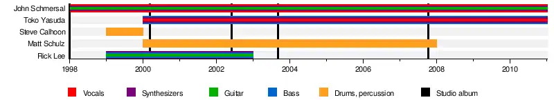 After the release of their first studio album Believo!, which was Produced by D. Sardy and signed to his SeeThru Broadcasting label in 1999, Calhoon left the band and was replaced by Toko Yasuda (bass/vocals/keyboard) and Matt Schulz (drums). Yasuda was previously in the bands Blonde Redhead, The Lapse and The Van Pelt. In 2000, Schmersal performed the theme song for Funny Garbage's “Katbot” interactive website, with small contributions from other Enon members.
