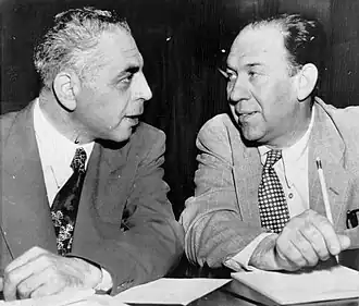 In 1948, Nelson was subpoenaed by the House Un-American Activities Committee (HUAC). As he later recalled, "Although the subpoena was vaguely worded, there was enough of a hint to show what HUAC was after. There was already a campaign underway to prove that the Soviet Union's development of the atomic bomb was the product of espionage."[26] He appeared before the HUAC in June 1949. His counsel Emanuel Bloch urged him to invoke the Fifth Amendment and decline all questions.[27] Years afterward, Nelson admitted he did not fully grasp the Fifth Amendment because he thought he could selectively answer some questions and invoke the Fifth for others. He quickly learned his mistake. As he put it, the HUAC's chief examiner that day, Congressman Richard Nixon, was "threatening me with contempt before the hearings were five minutes old."[28] Nelson wound up with 33 counts of contempt of Congress, each carrying a possible sentence of one year in jail. Six months later, with Milton Freedman as his lawyer, Nelson managed to get the contempt charges dismissed.[28]