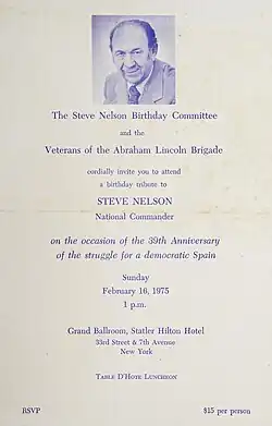 - ^ a b "Nelson, Steve - Biography". ALBA (Abraham Lincoln Brigade Archives). 10 December 2019. Retrieved 6 November 2024.