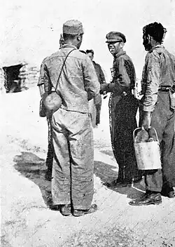 With the outbreak of civil war in Spain, Nelson immediately tried to join the Abraham Lincoln Brigade of American volunteers, but he was told by the CPUSA District Committee that he was needed in Pennsylvania to organize anthracite coal miners.[16] However, once the Republican side suffered a severe setback at the Battle of Jarama in February 1937, Nelson, Dallet and 23 others were allowed to fight in Spain. After being briefly arrested and detained in France, they reached Spain by climbing the Pyrenees mountains. They met the International Brigades at Albacete in May 1937.[7] As his first assignment, Nelson was named political commissar of the Abraham Lincoln Battalion. Following heavy losses at Brunete (during which he briefly served as battalion commander following the death of Oliver Law),[11][17] the Lincoln Battalion and the George Washington Battalion were merged into the Lincoln–Washington Battalion. Mirko Markovics, a Yugoslav-American, was appointed as commander of the joint unit, with Nelson serving as the commissar.[18]