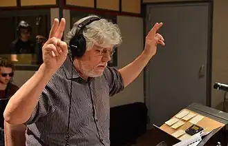 ![]() From Lab 2013: Steve Wiest directing the One O'Clock Lab Band during a recording session at Crystal Clear Sound Studios, Dallas, May 19–21, 2013 (photo by Michael Clements) | |