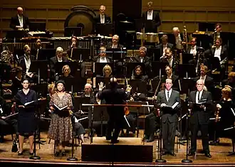 Steven Stucky was long associated with the Los Angeles Philharmonic, where he was resident composer 1988–2009 (the longest such affiliation in American orchestral history); he was host of the New York Philharmonic's Hear & Now series 2005–09; and he was Pittsburgh Symphony Composer of the Year for the 2011–12 season. For Pittsburgh, he composed Silent Spring, in honor of the 50th anniversary of Rachel Carson's epochal book of the same title.[3] He teamed with the celebrated pianist and author Jeremy Denk to create his first opera, The Classical Style (based on the celebrated book by Charles Rosen), which premiered in June 2014 at the Ojai Music Festival.[4] Other noteworthy compositions by Stucky include the symphonic poem Radical Light (2007), Rhapsodies for Orchestra (2008), the oratorio August 4, 1964 (2008), a Symphony (2012), and his Second Concerto for Orchestra (2003), which won the 2005 Pulitzer Prize for Music.[5][6] Stucky was an expert on the Polish composer Witold Lutosławski and authored the 1981 study Lutoslawski and His Music. He also was curator of the Philharmonia Orchestra's 2013 centenary celebration of that composer, Woven Words: Music Begins Where Words End. Stucky was the Given Foundation Professor of Composition at Cornell University in Ithaca, New York[7]
