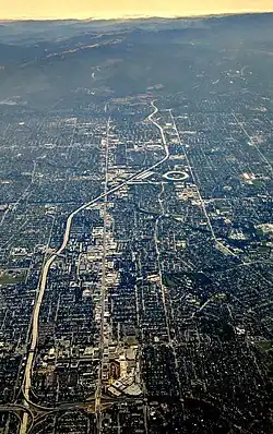 ![]() The San Carlos Street/Stevens Creek Boulevard corridor with Apple Park on the top right. | |